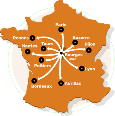 Cher (18), Eure-et-Loir (28), Indre (36), Indre-et-Loire (37), Loir-et-Cher (41) et Loiret (45), notre équipe intervient pour la construction de votre maison en bois dans toute la région Centre et plus en fonction de la demande.